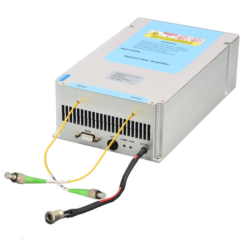 L波段高功率保偏摻鉺光纖放大器基于光信號在摻鉺光纖中的受激光放大原理,采用高效的保偏光纖光放大設計和高功率激光散熱工藝,實現1570~1605nm波長激光的高功率保偏輸出。具有高功率、高消光比、低噪聲的優點,可用于光纖通信、激光雷達等。